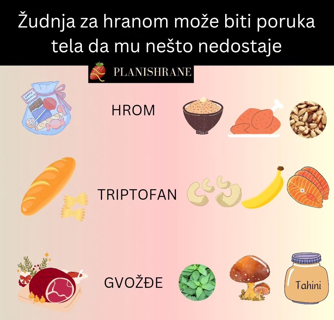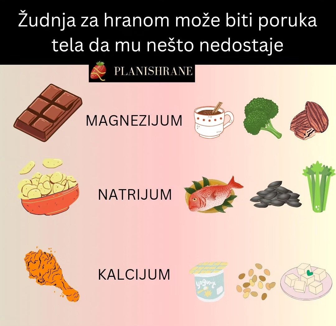 Zudnja za određenim namirnicama često može biti suptilan znak da vašem organizmu nedostaje određeni nutrijent. Evo nekoliko primera: