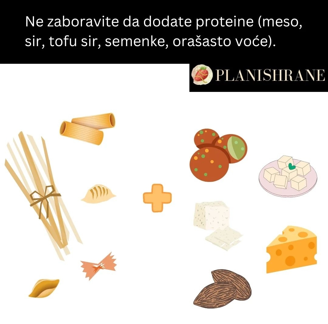 Paste često manjkaju sa proteinima, pogotovo vegetarijanske opcije recimo pesto ili 4 vrste sira. Obavezno dodajte protein u vidu mesa, ribe, tofu sira, leblebija. Dodajte i semenke i orašaste plodove, kako biste upotpunili izvor proteina, plus dodali zdrave masnoće.