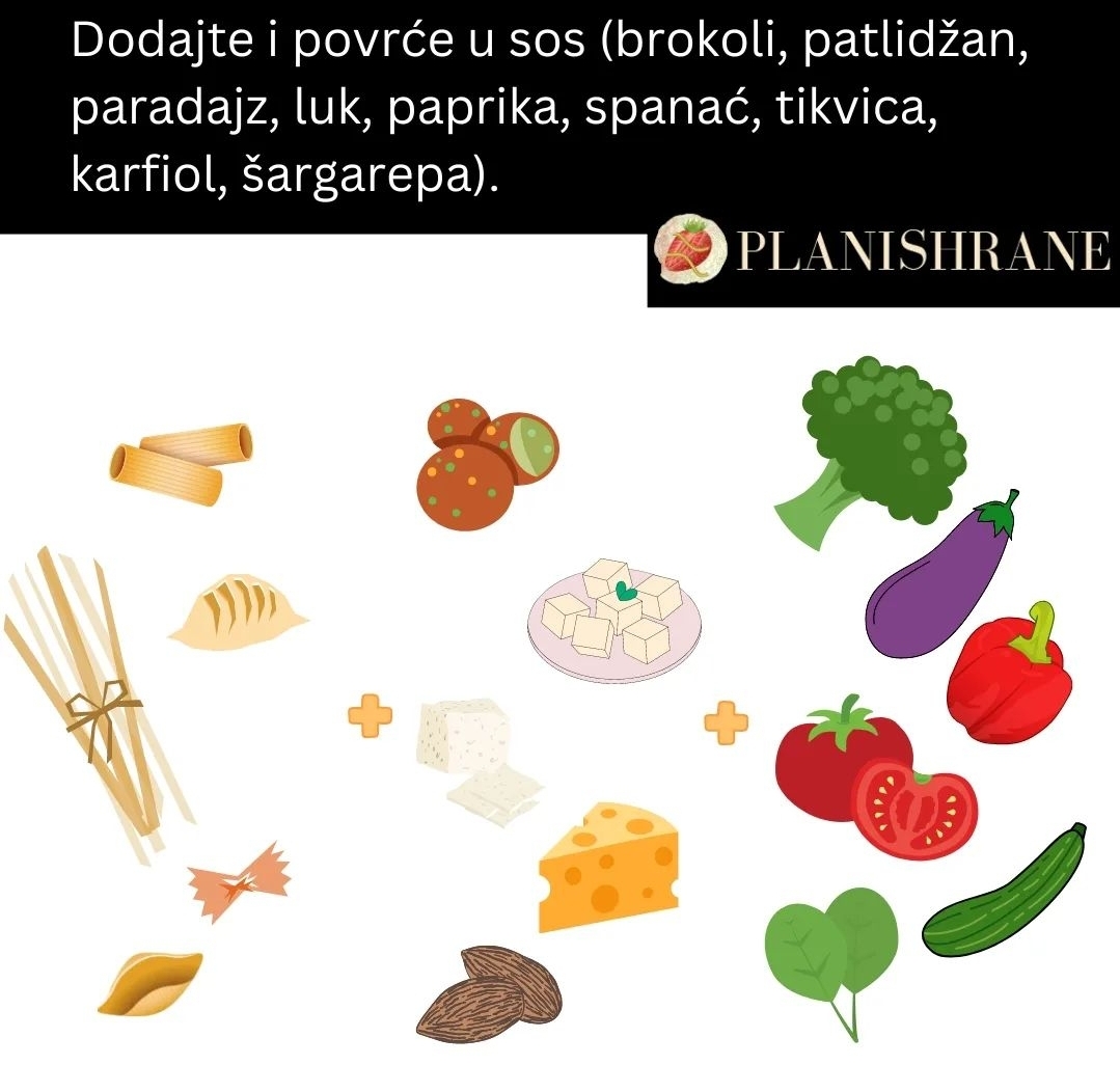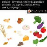 U sos dodajte povrće, to može biti luk, paprika, tikvice, patlidžan, paradajz, spanać, pečurke, karfiol, brokoli. Napravite vaš miks.